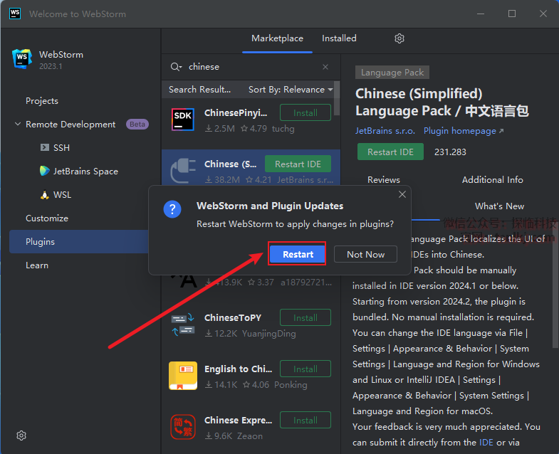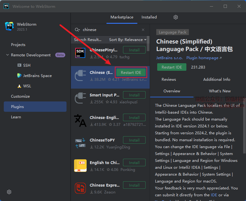 点击【Restart IDE】。
