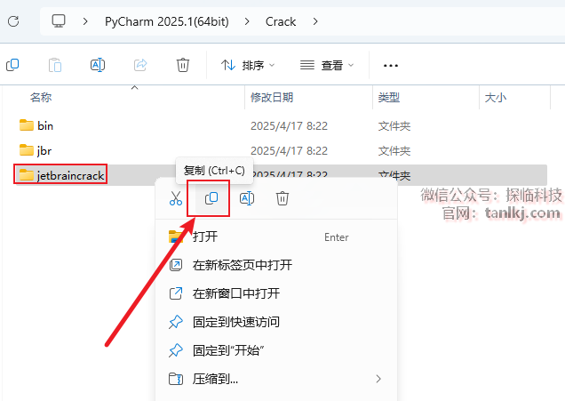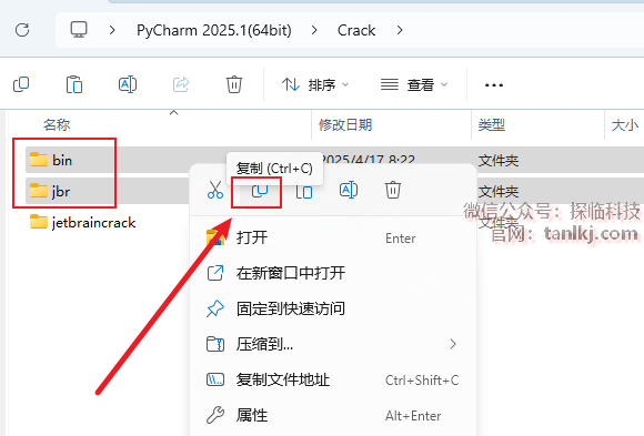 回到【Crack】文件夹中,复制文件【bin】和【jbr】。