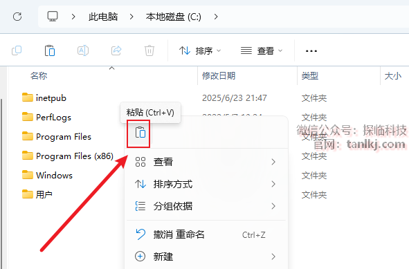 打开电脑C盘,粘贴刚刚复制的文件。