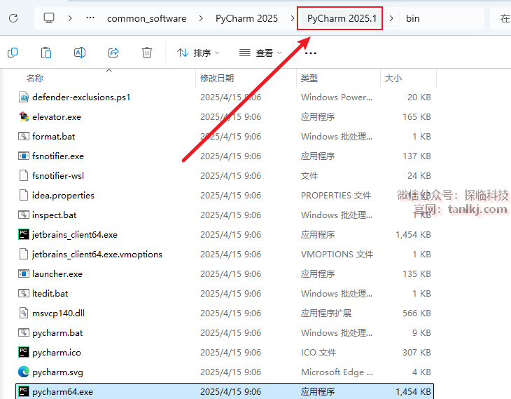 点击上方地址栏中的【PyCharm 2025.1】。