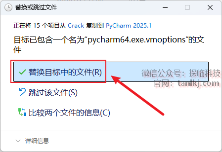 点击【替换目标中的文件】。