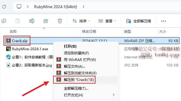 回到之前解压后的文件夹中,解压文件【Crack】。