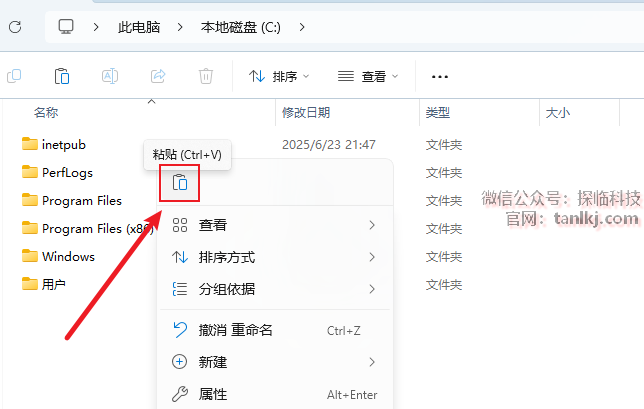 打开电脑C盘,粘贴刚刚复制的文件。
