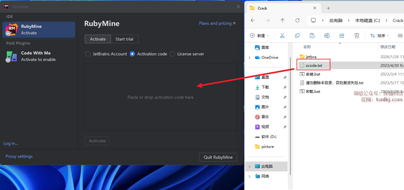 回到C盘中的【Crack】文件夹中,将文件【zcode】拖至软件中。