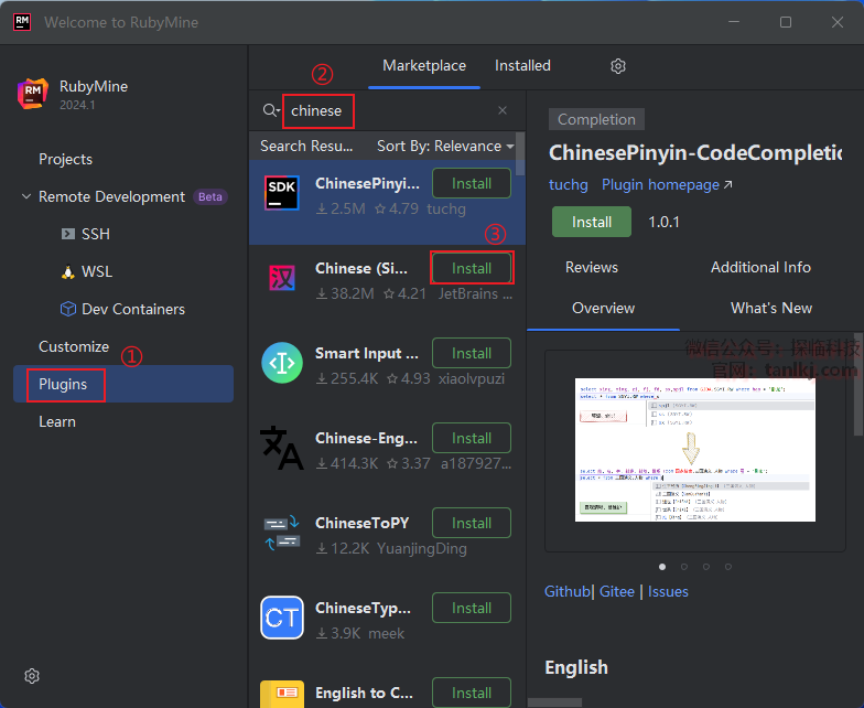 ③点击【Cinese(Simp…)】后的【Install】。