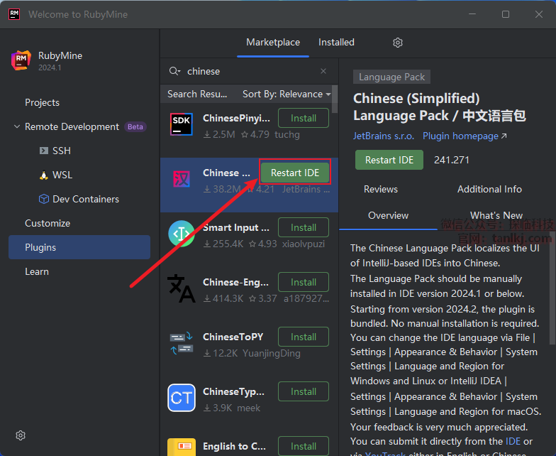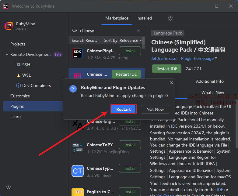 点击【Restart IDE】。