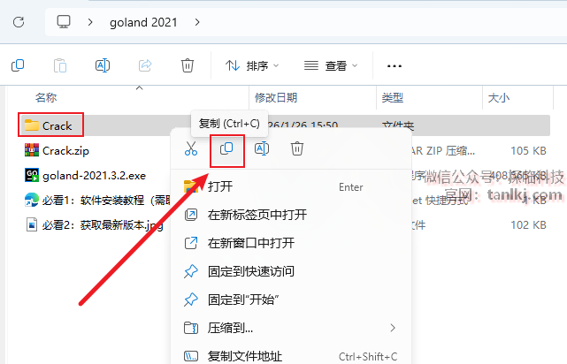 复制刚刚解压后的文件夹【Crack】。