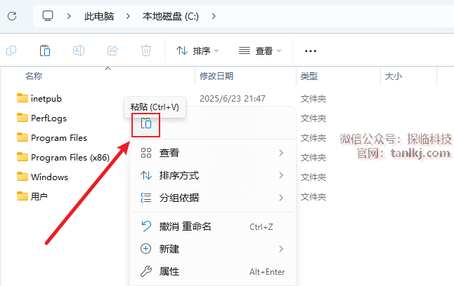 打开电脑C盘,粘贴刚刚复制的文件。