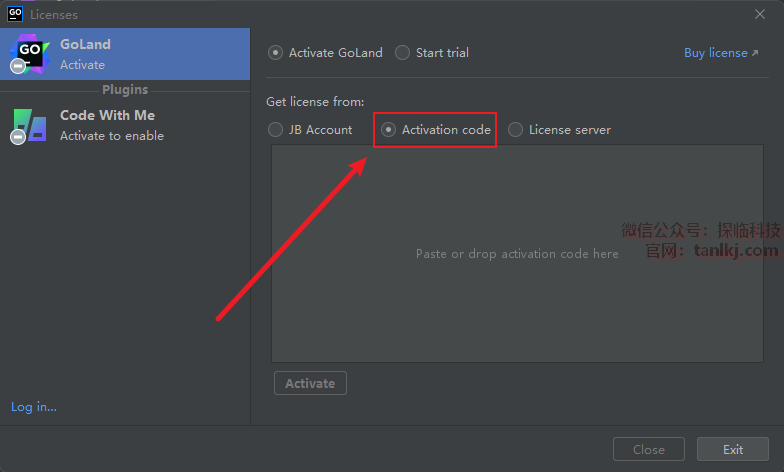 勾选【Activation code】。