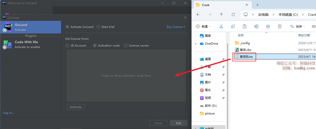 回到C盘中的【Crack】文件夹中,将文件【激活码】拖至软件中。