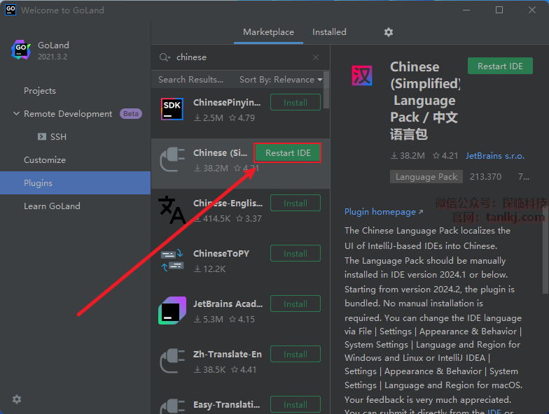 点击【Restart IDE】。