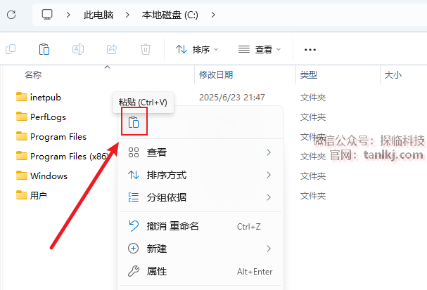打开电脑C盘,粘贴刚刚复制的文件。