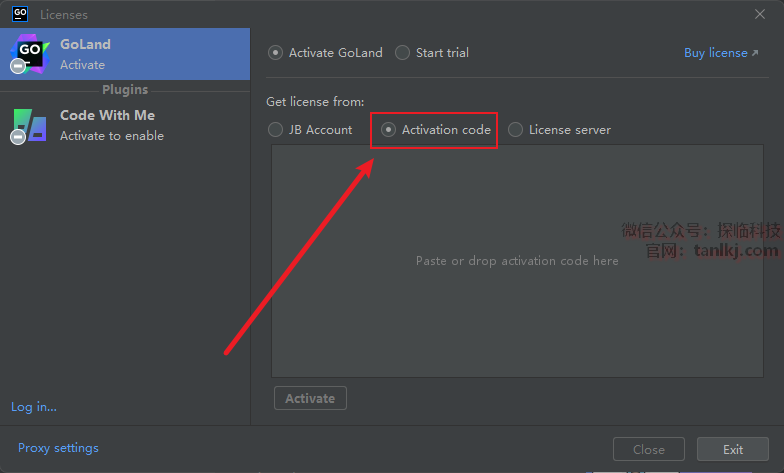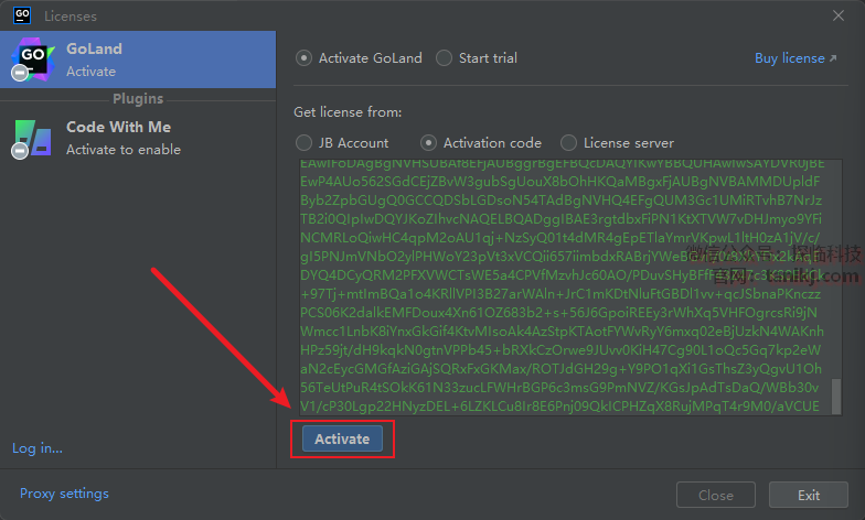 勾选【Activation code】。