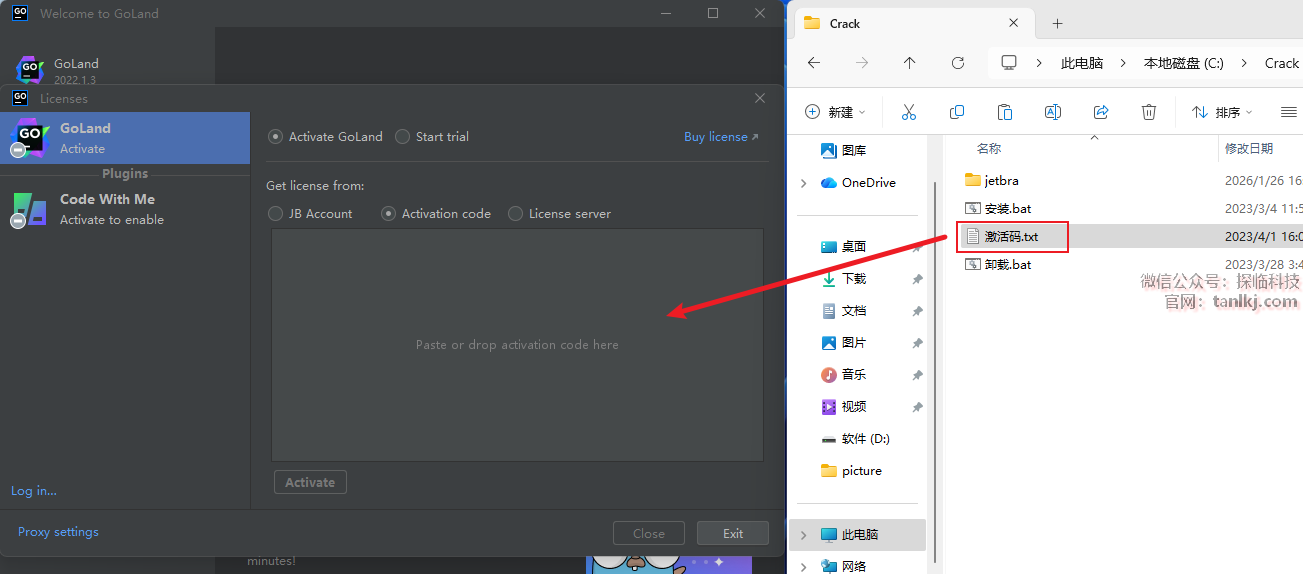 回到C盘中的【Crack】文件夹中,将文件【激活码】拖至软件中。