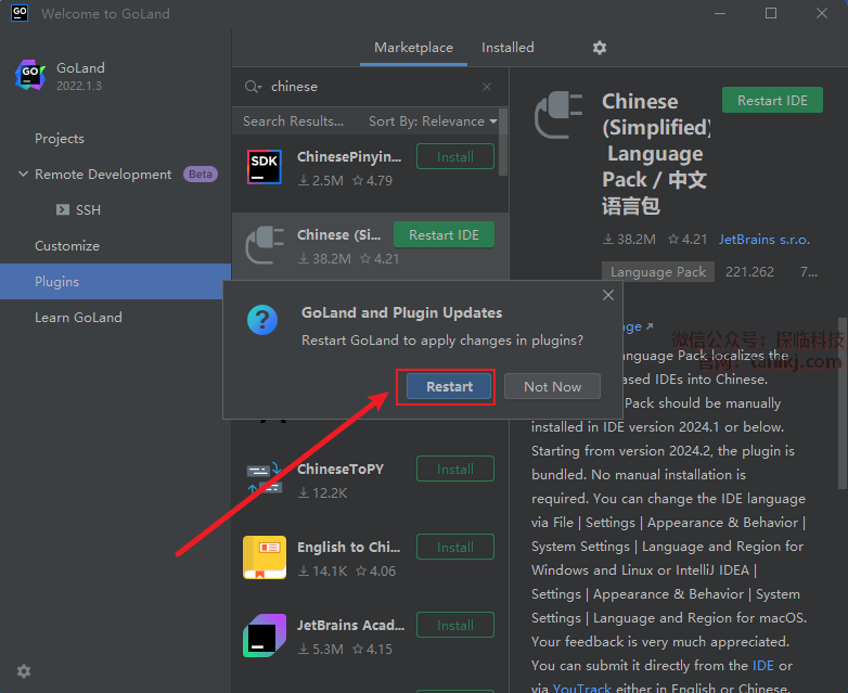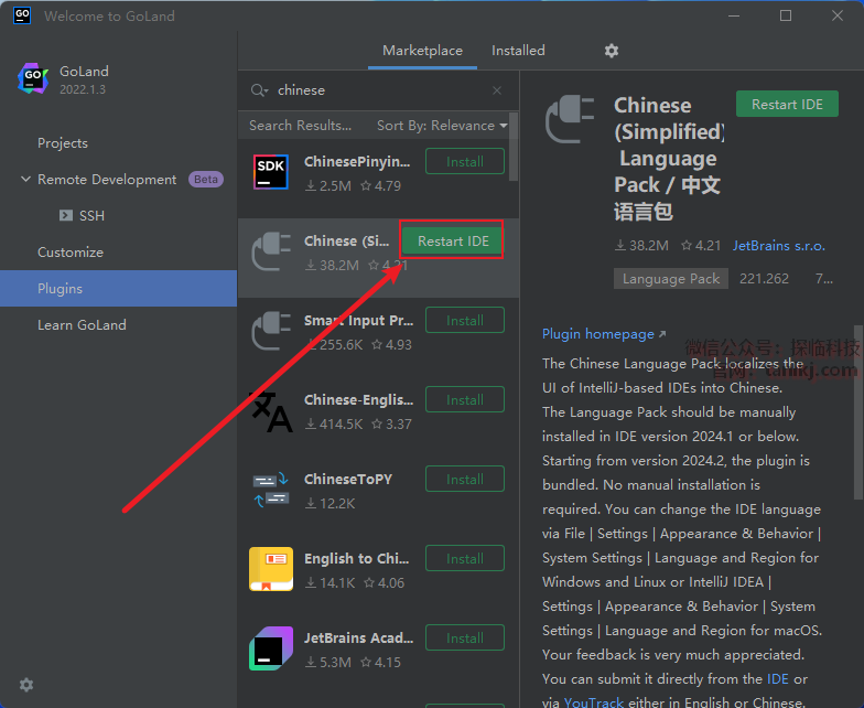 点击【Restart IDE】。