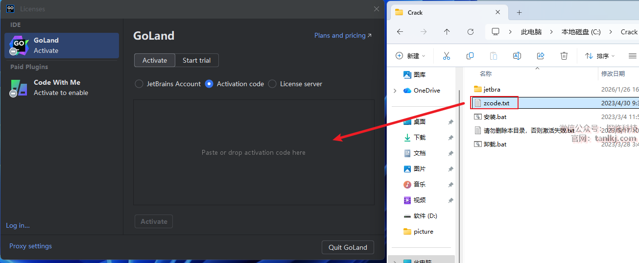 回到C盘中的【Crack】文件夹中,将文件【zcode】拖至软件中。