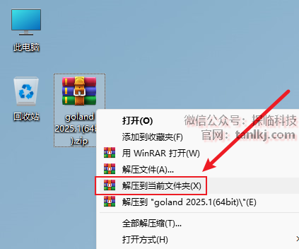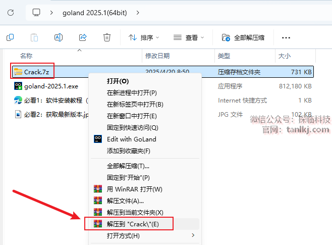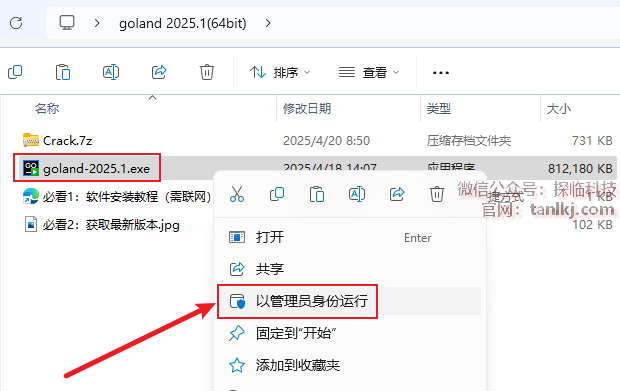 打开解压后的文件夹,右键程序【goland-2025.1】,点击【以管理员身份运行】。