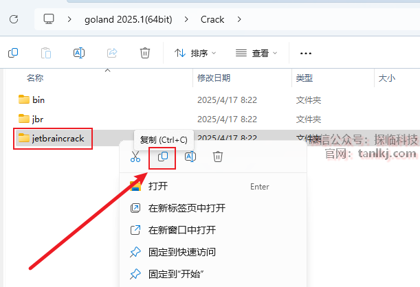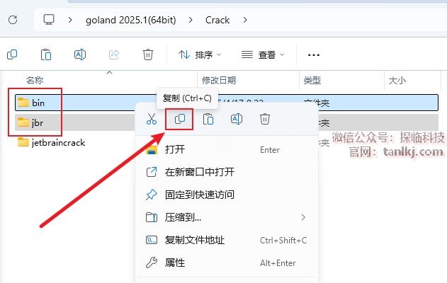 回到【Crack】文件夹中,复制文件【bin】和【jbr】。