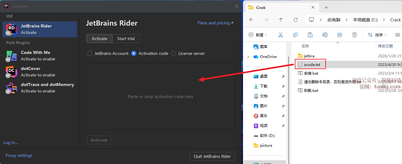 回到C盘中的【Crack】文件夹中,将文件【zcode】拖至软件中。