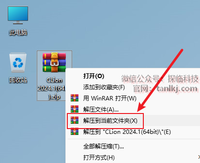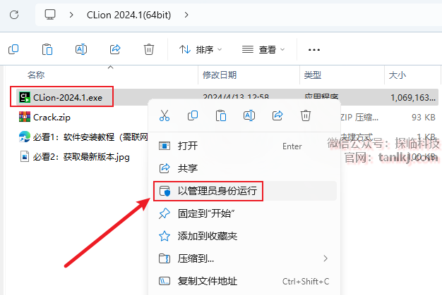 打开解压后的文件夹,右键程序【CLion-2024.1】,点击【以管理员身份运行】。