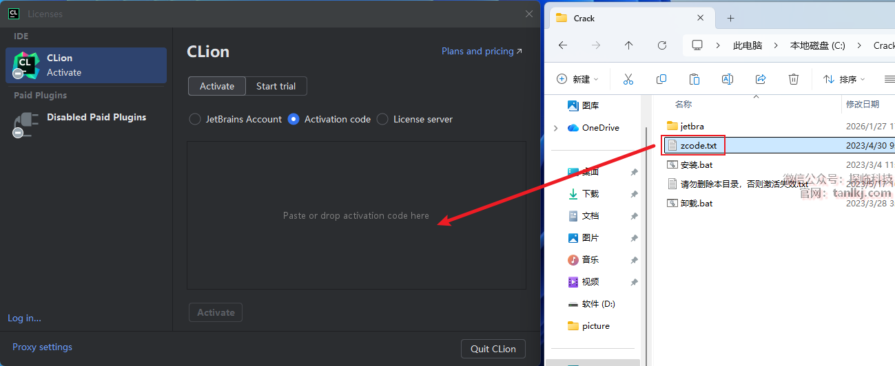 回到C盘中的【Crack】文件夹中,将文件【zcode】拖至软件中。