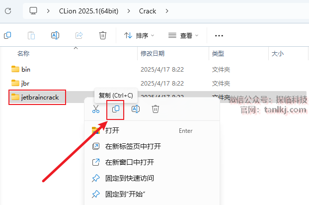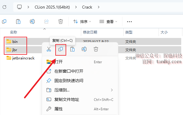 回到【Crack】文件夹中,复制文件【bin】和【jbr】。