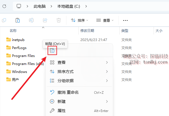 打开电脑C盘,粘贴刚刚复制的文件。
