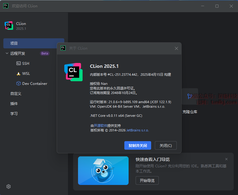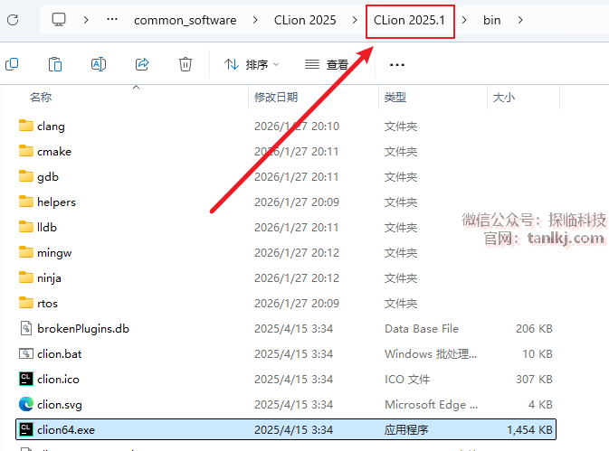 点击上方地址栏中的【CLion 2025.1】。