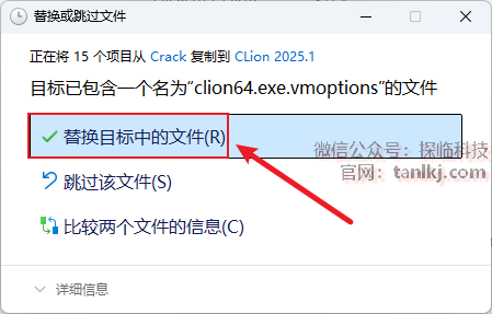 点击【替换目标中的文件】。