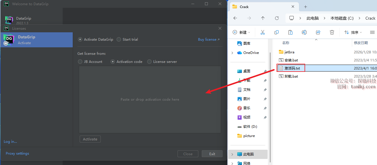 回到C盘中的【Crack】文件夹中,将文件【激活码】拖至软件中。