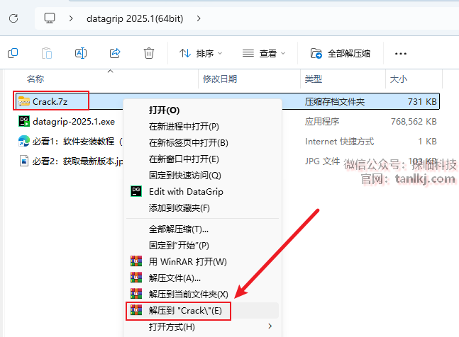 回到之前解压后的文件夹中,解压文件【Crack】。