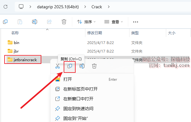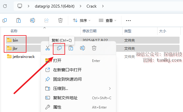 回到【Crack】文件夹中,复制文件【bin】和【jbr】。