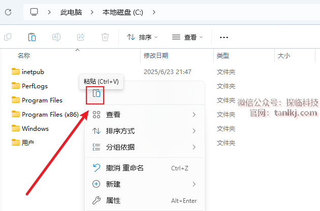 打开电脑C盘,粘贴刚刚复制的文件。
