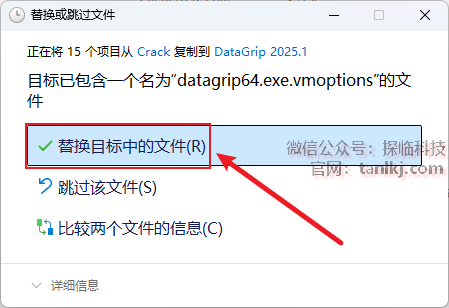 点击【替换目标中的文件】。