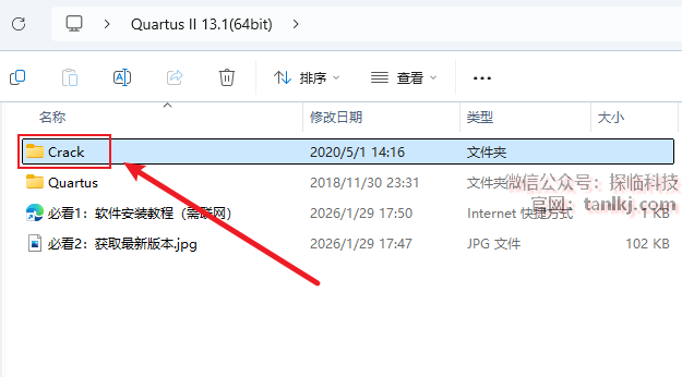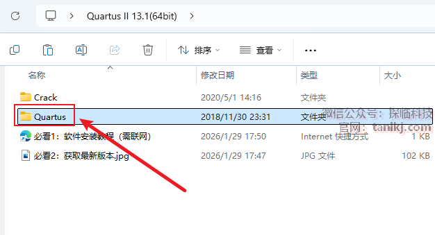 打开解压后的文件夹,双击打开文件夹【Quartus】。