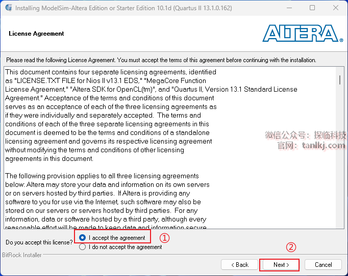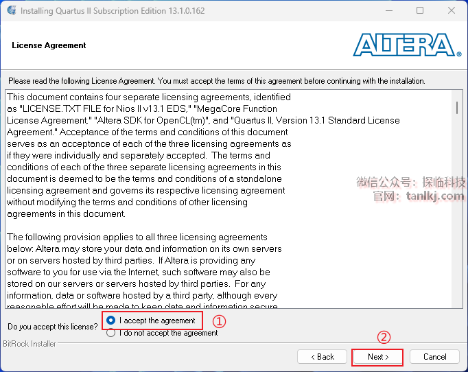 ①勾选【I accept the agreement】;