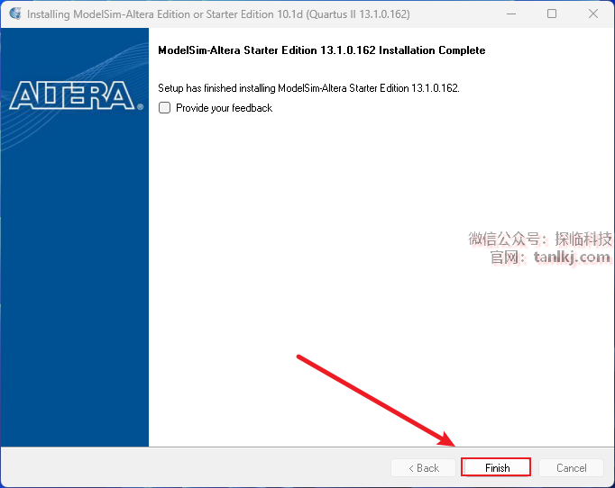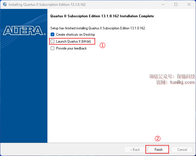 ①去掉勾选【Launch Quartus II 】;