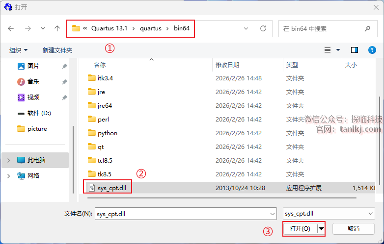 ①打开软件的安装位置,依次打开文件夹【quartus】->【bin64】;