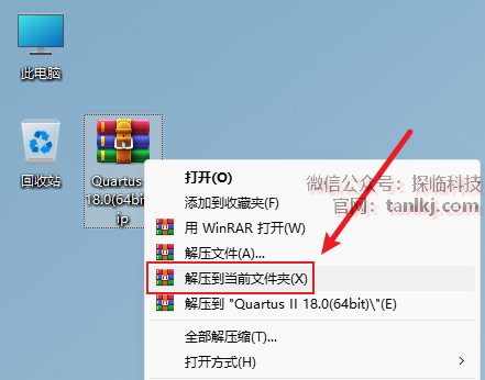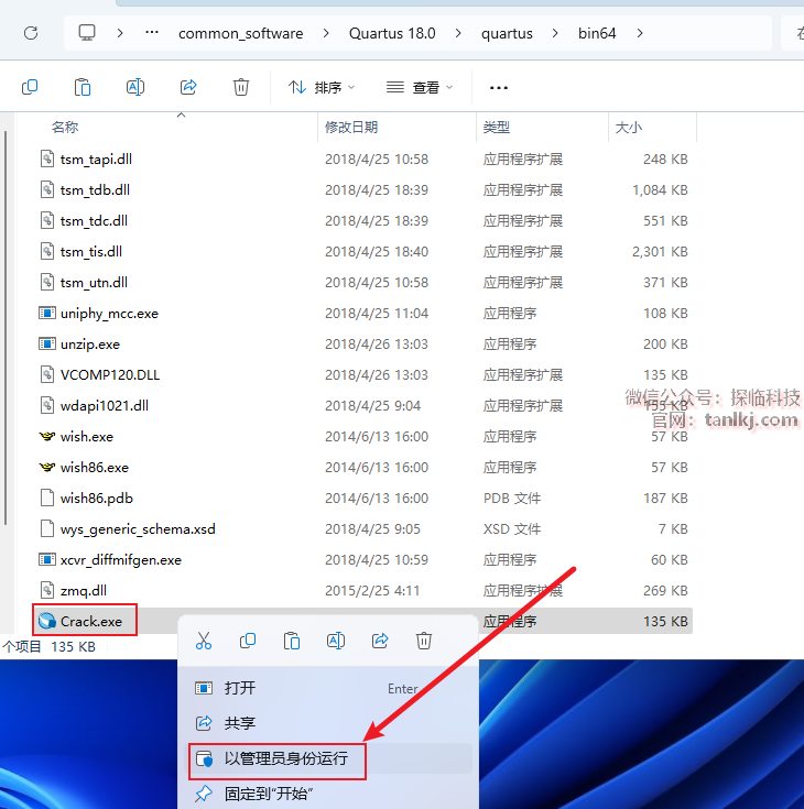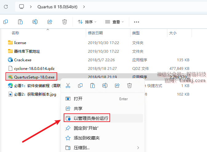 打开解压后的文件夹,右键程序【QuartusSetup-18.0】,点击【以管理员身份运行】。
