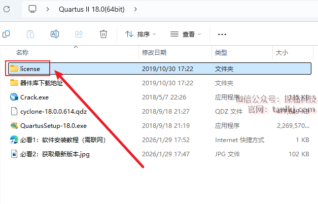 回到之前解压后的文件夹中,双击打开文件夹【license】。
