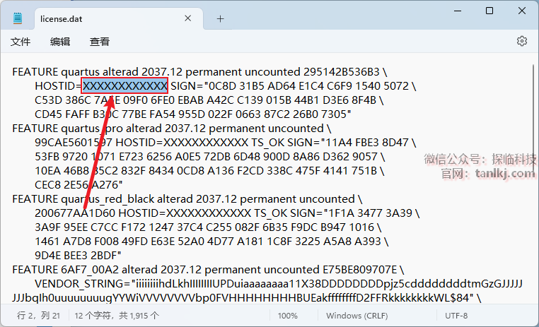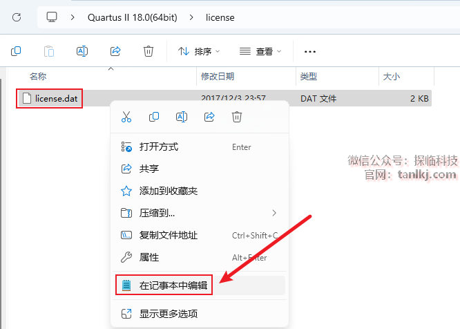 右键文件【license】,点击【在记事本中编辑】(如无此项,点击【打开方式】,选择【以记事本方式打开】)。