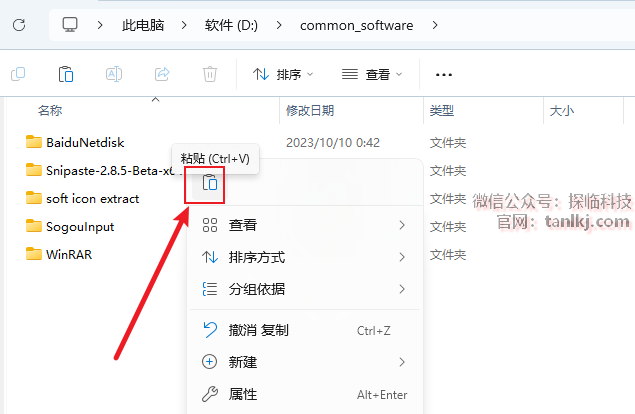 打开软件需要安装的位置,粘贴刚刚复制的文件。