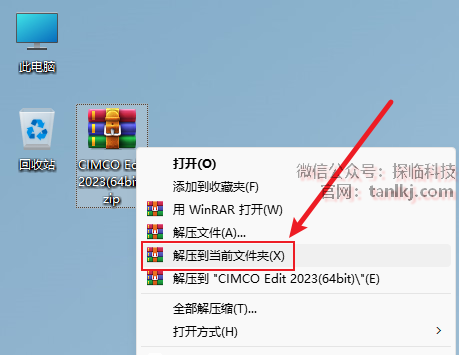 解压下载后的软件包。右键软件包,点击【解压到当前文件夹】(win11系统需先点击【显示更多选项】)。 (未安装解压软件可以点击此处查看:如何安装解压软件?)