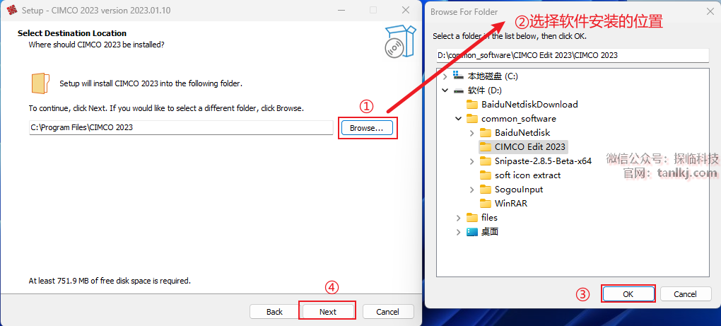 ②选择软件安装的位置,安装路径中不能包含任何中文字符;