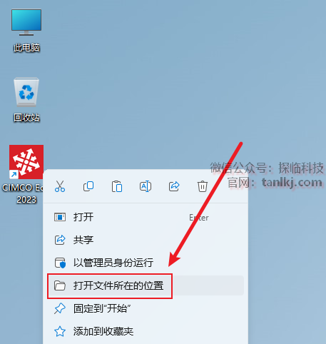 在桌面,右键软件【CIMCO Edit 2023】,点击【打开文件所在的位置】。