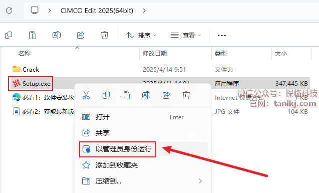 打开解压后的文件夹,右键程序【Setup】,点击【以管理员身份运行】。