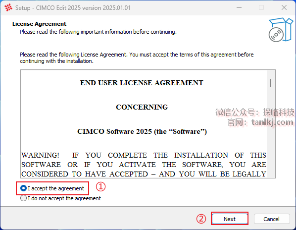 ①勾选【I accept the agreement】;