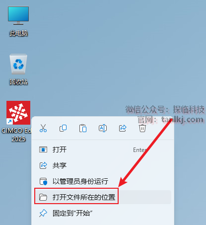 在桌面,右键软件【CIMCO Edit 2025】,点击【打开文件所在的位置】。