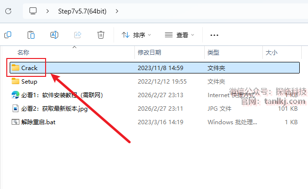 回到之前解压后的文件夹中,双击打开文件夹【Crack】。
