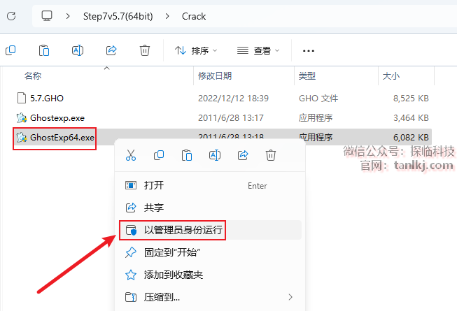 右键程序【GhostExp64】,点击【以管理员身份运行】。